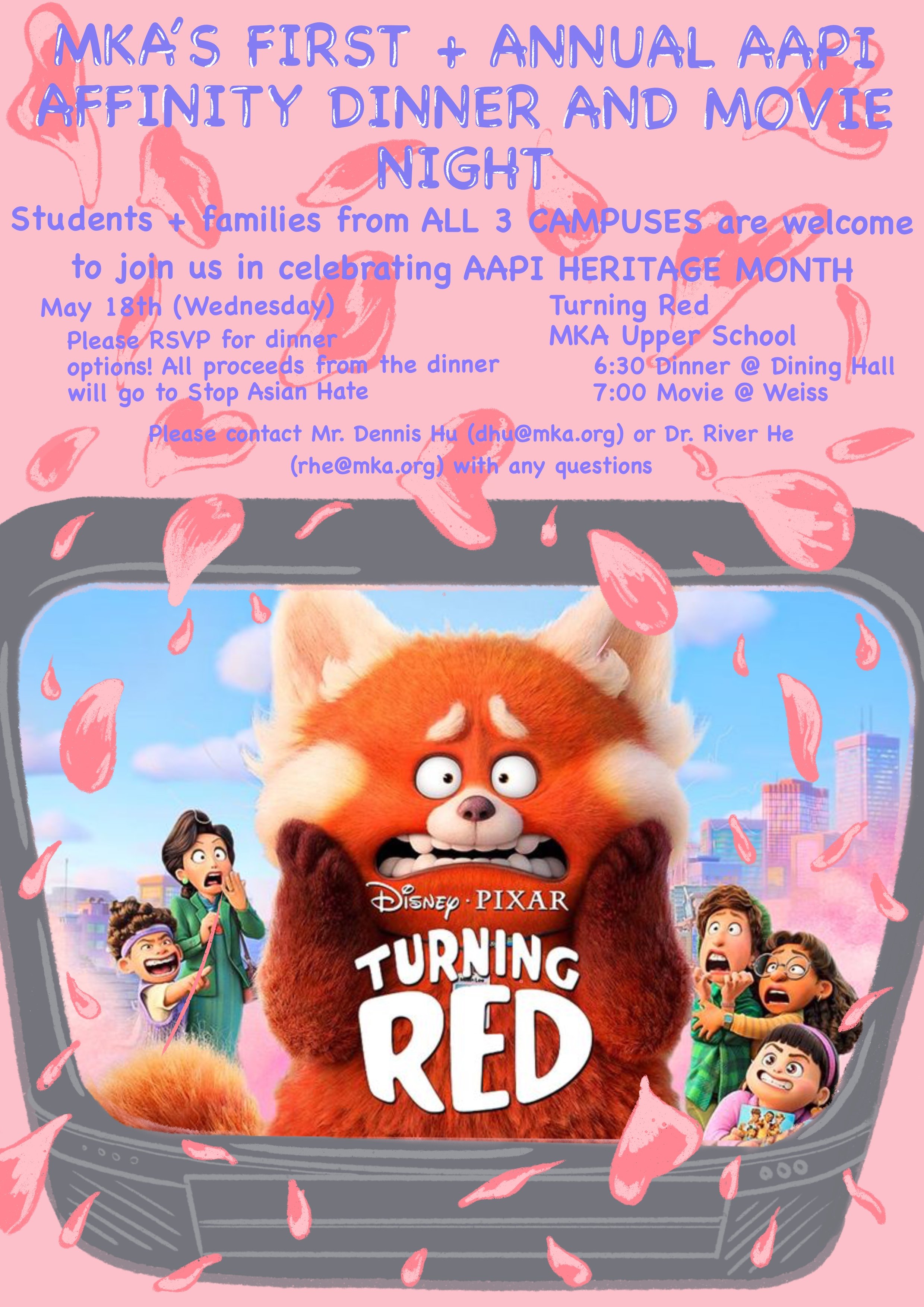 The MKA AAPI Affinity Group hosted its first tri-campus movie night! We hosted an AAPI dinner and watched the film Turning Red.